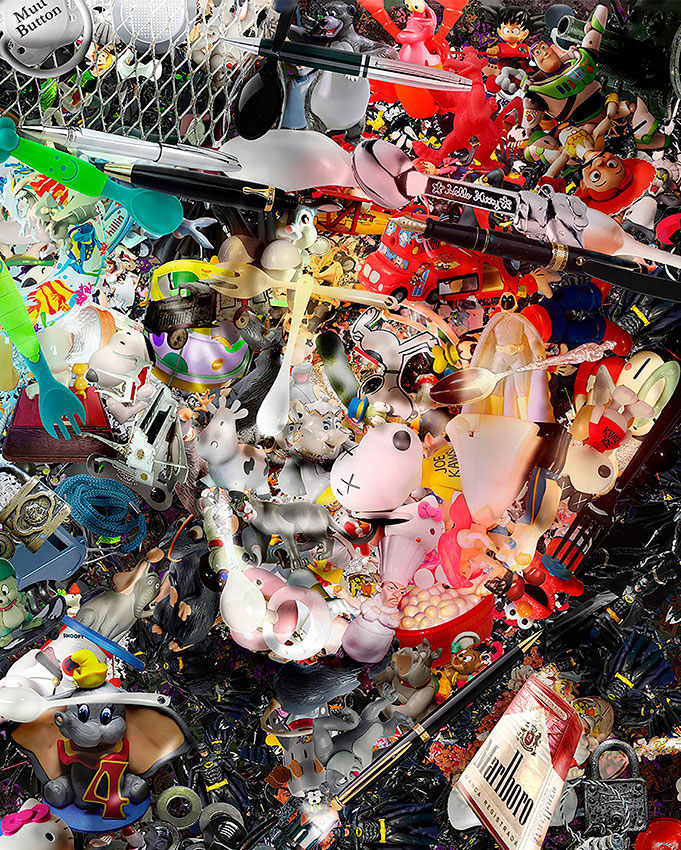 En este trabajo, Espitia gira en torno a su universo "Crash"; que se crea a partir de una gran variedad de materiales. Hecho de materiales reciclados, crea Ilusiones Opticas que pertenecen a un universo donde nuestros ojos nos engañan, nuestro cerebro nos limita y solo ve lo que queremos ver. Trabajando en dos estudios, uno en Miami y el otro en Colombia, Espitia trabaja con 11 recicladores que lo ayudan a obtener materiales y también a ayudar con su trabajo. Utiliza piezas hechas de juguetes reciclados, libros, CDs y películas de video, además de un montón de casetes y todo tipo de artículos que, debido al hecho que cayeron "presas" de la colisión y quedaron fuera de circulación, ahora se utilizan para obras de arte que nos hacen ver lo que no existe.