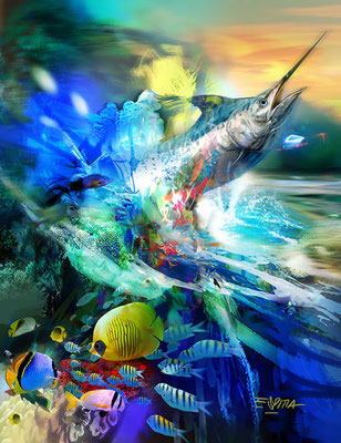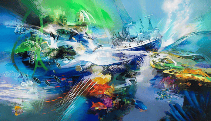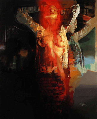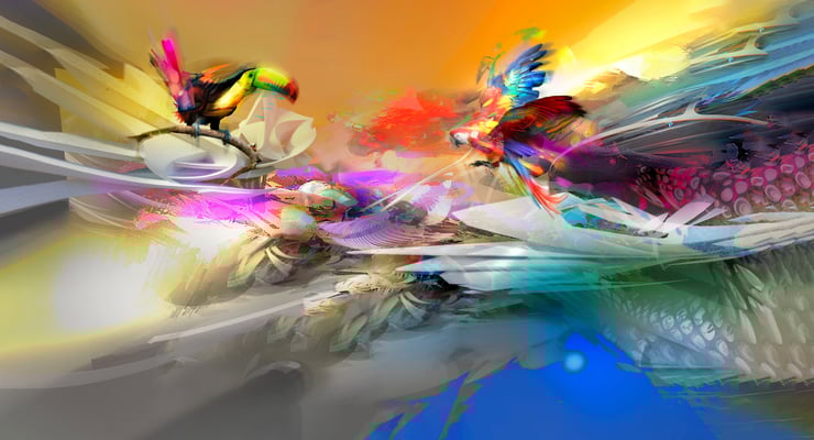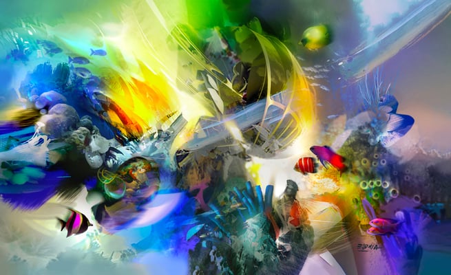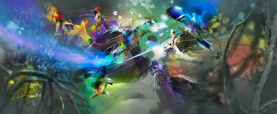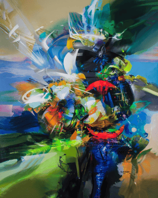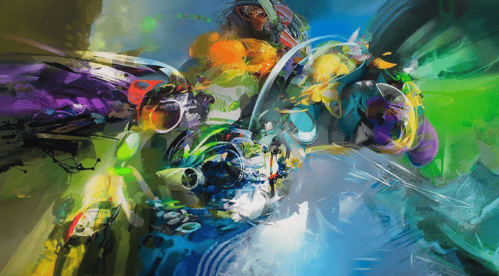 "Se trata de mostrar y reinterpretar lo que más me atrae: el color, así que comienzo a crear composiciones complejas que me permiten contar, dentro de la misma imagen, diferentes sensaciones de color, texturas y formas que cuentan historias, estas historias se leen como producto del resultado de la combinación de lo que se describe en la imagen, sugerido por los pinceles y las manchas de color y por la imaginación del observador. Siempre quiero que, en última instancia, el espectador se sienta sorprendido y encantado con mi trabajo. Cuando ve de cerca y con cuidado uno de mis trabajos, especialmente el trabajo de los últimos años, todas las manchas y pinceladas abstractas son efectos individuales, que en conjunto terminan mostrando una posible imagen, un mundo abstracto que nuestro cerebro, que está acostumbrado a traer todo en una realidad tangible, hace muy creíbles mis espacios, mis personajes y temas que me cautivan, por supuesto, esto exaltado con la magia que nos ofrece 3D".