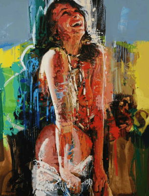"Mi técnica es la suma de muchos años de experimentos y pruebas que han resultado en la superposición de puntos y efectos para transmitir un mensaje. En el proceso utilizo técnicas y conceptos de frecuencia de onda de los colores, la velocidad a la que los colores viajan en el espacio, para producir sensaciones de belleza en el cerebro del espectador y también para poder mostrar mi trabajo en 3D, y sí, mis pinturas se pueden ver de manera convencional y con gafas 3D donde las imágenes aparecen como capas para producir la ilusión de profundidad y el vértigo 3D, esto es muy interesante en mis exposiciones, es innovador y el público lo reconoce como una contribución al arte del momento".