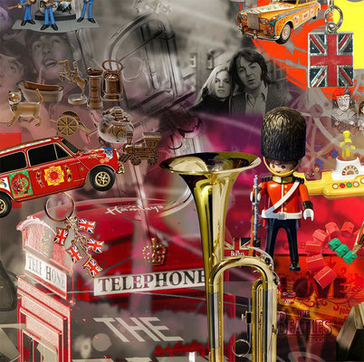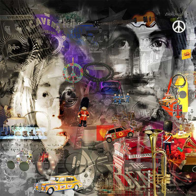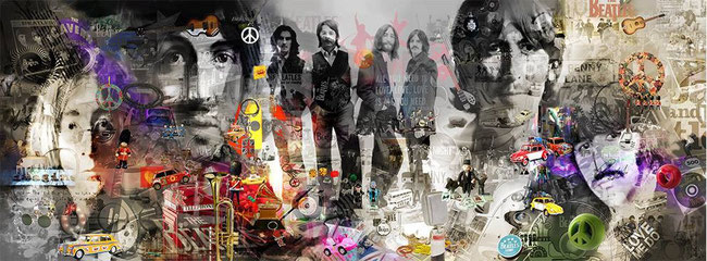 El Mural BEATLES de 9 x 3.5 metros, es una Ilusión Optica de un collage de 5.000 mil fotografías que contiene información de revistas, discos de vinilo, cassettes de música, objetos, recortes de periódicos, hechos y sucesos durante la vida artística de la banda mas famosa de Inglaterra.